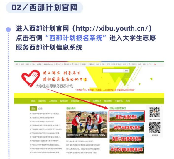 4月12日起至5月中下旬,2023年西部计划全国项目实施规模将继续保持2万人,地方项目预计实施规模将超过4万人,分为乡村教育、服务乡村建设、健康乡村、基层青年工作、乡村社会治理、服务新疆、服务西藏等7个专项。2023年普通高等学校应届毕业生和在读研究生,在西部计划报名系统中进行注册报名。2023—2024年度,由中央财政支持,面向普通高等学校(教育部《全国普通高校名单》所列高校)应届毕业生或在读研究生,按照公开招募、自愿报名、组织选拔、集中派遣的方式,招募选派2万名西部计划全国项目志愿者到西部地区基层工作(含已招募的第二十五届中国青年志愿者扶贫接力计划研究生支教团志愿者)。各地参照全国项目的运行模式和工作要求,组织实施西部计划地方项目,预计实施规模将超过4万名。西部计划全国项目和地方项目均可通过西部计划官方网站(http://xibu.youth.cn)报名。